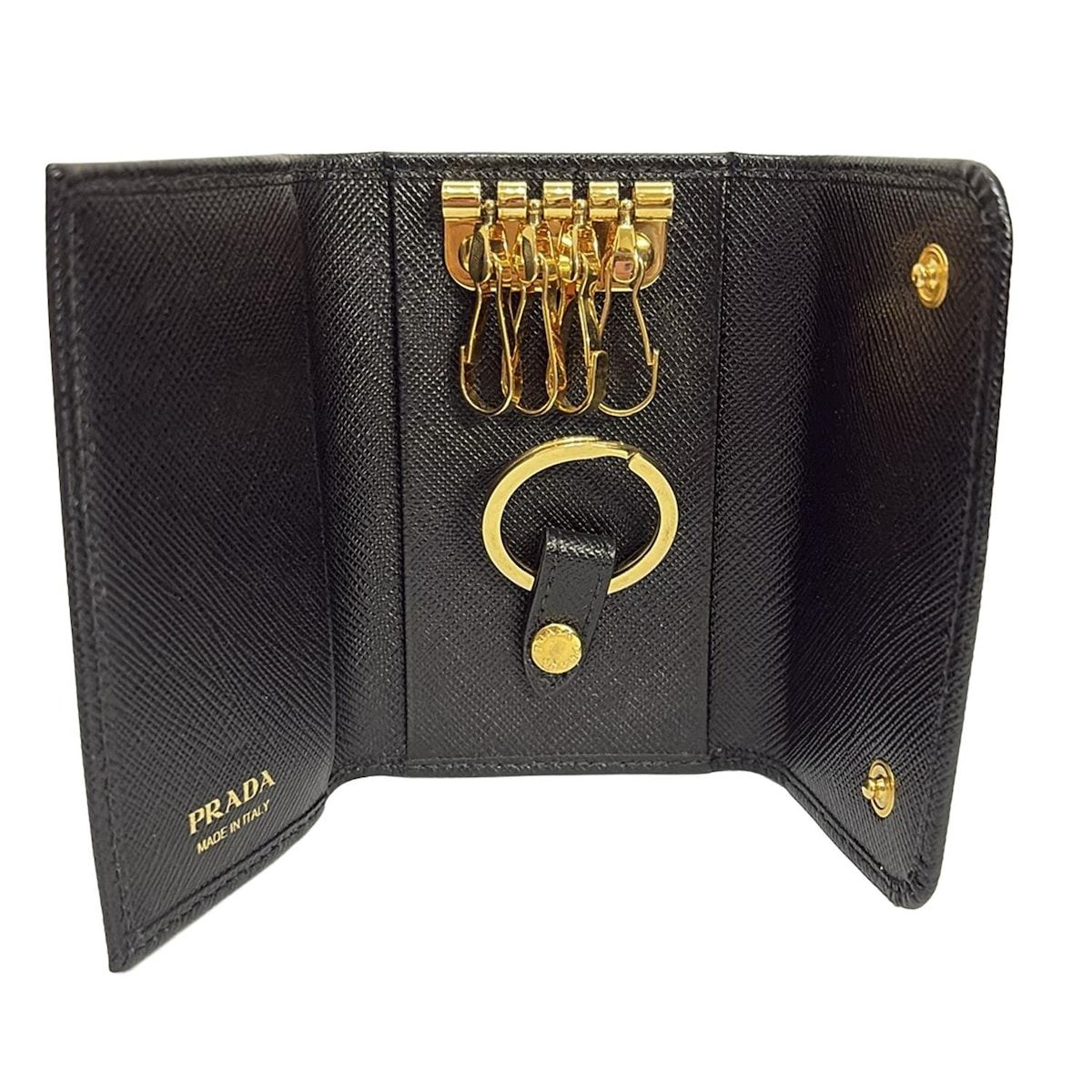 PRADA プラダ キーケース - 1 PG 004 黒 4連フック キーリング付き レザー