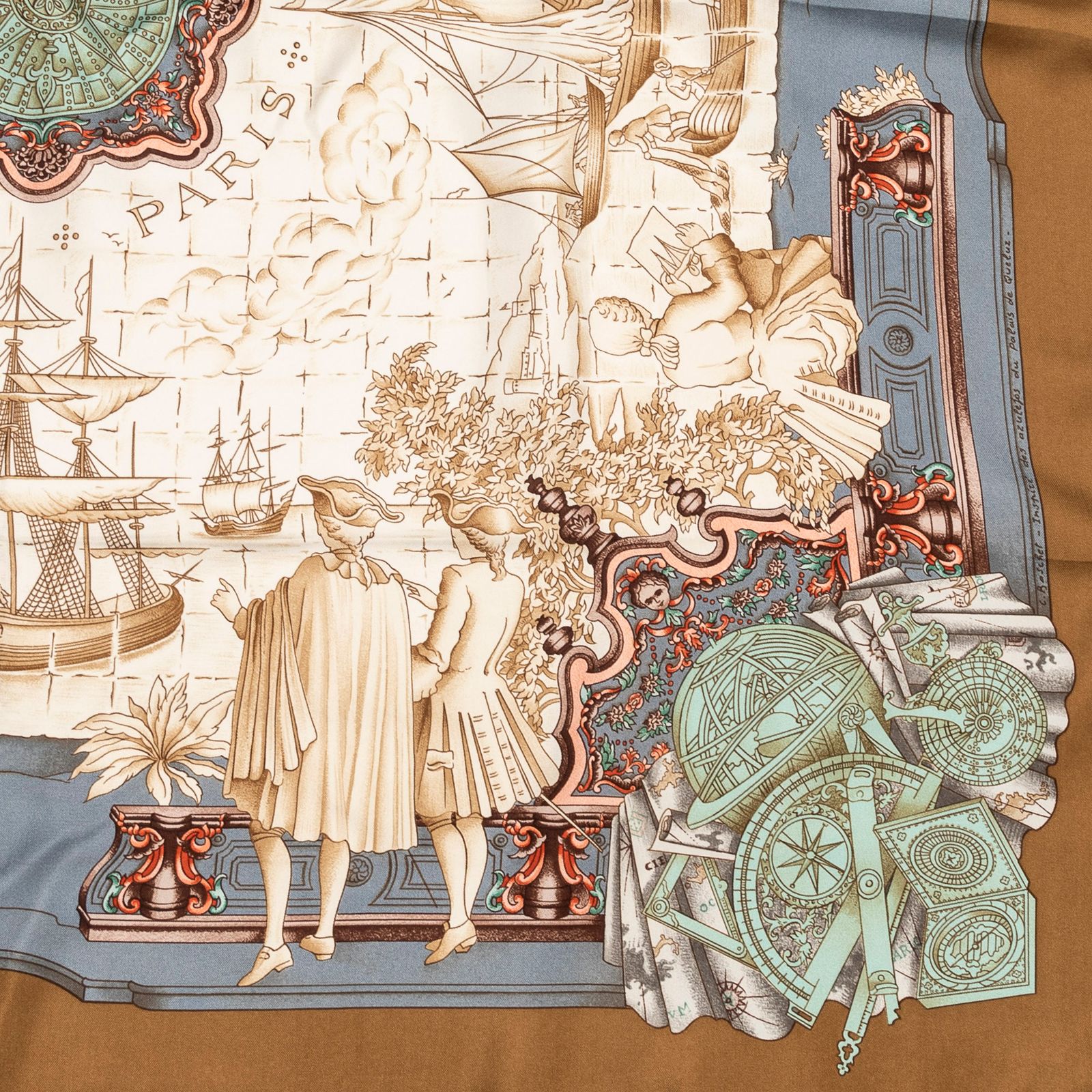 HERMES エルメススカーフベージュ ダークグリーン グレー ツイルシルクA
