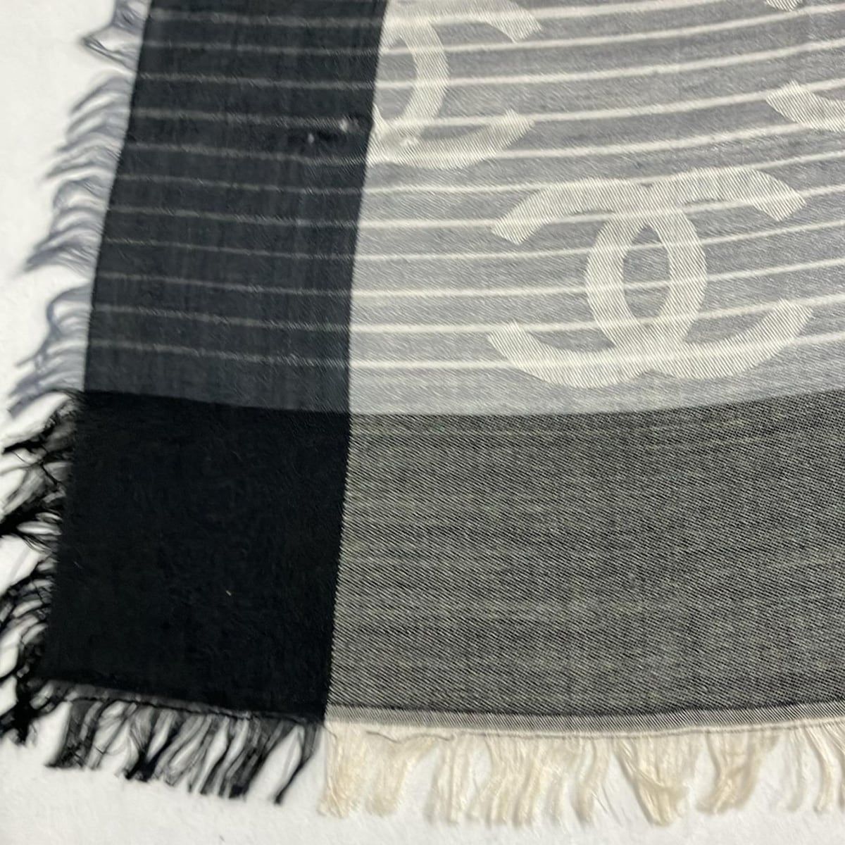 CHANEL シャネル ストール ショール - 黒×白×ピンク ココマーク カシミヤ シルク