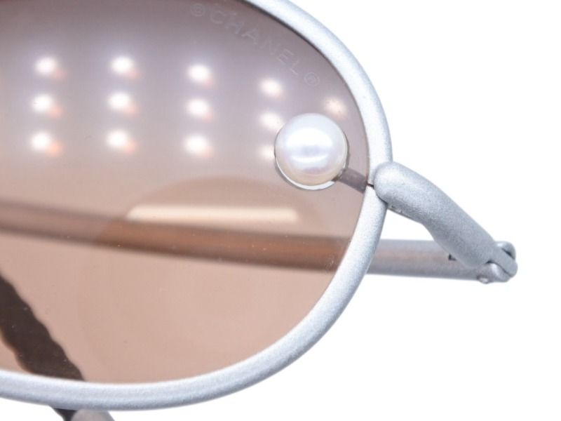 CHANEL シャネル サングラス アイウェア ココマーク フェイクパール メタル プラスチック シルバー ブラウン 4 b 007908