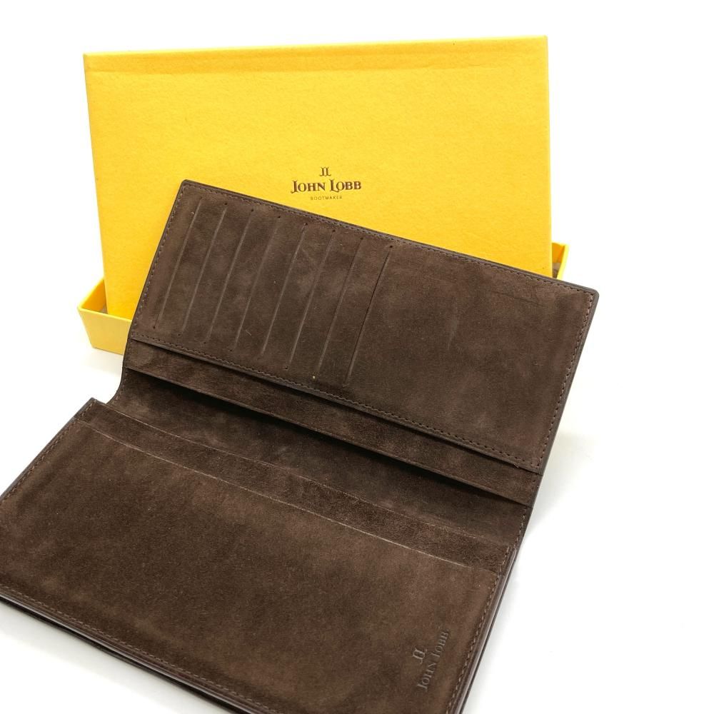 ジョンロブ John Lobb 長財布 スウェード レザー ブラウン メンズ