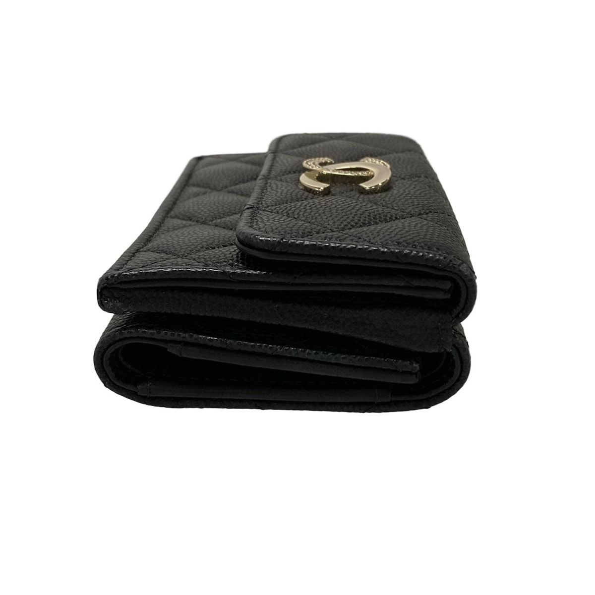 CHANEL シャネル 3つ折り財布 マトラッセ AP 4173 黒 ゴールド金具 ラインストーン
