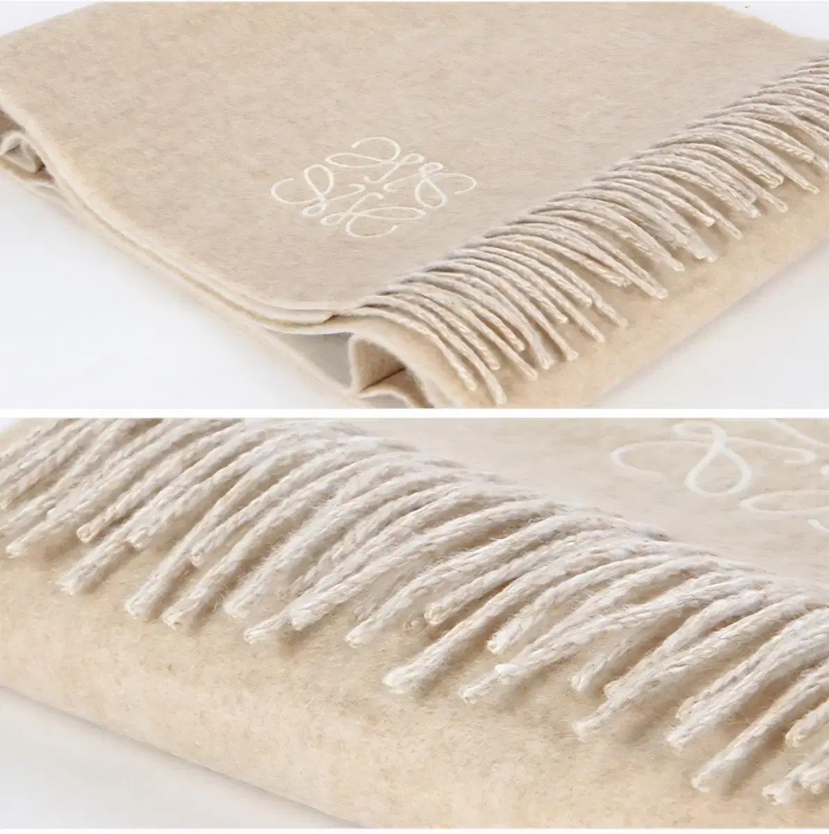 ロエベ LOEWE アナグラム刺繍 ベージュ ウール-カシミア マフラー