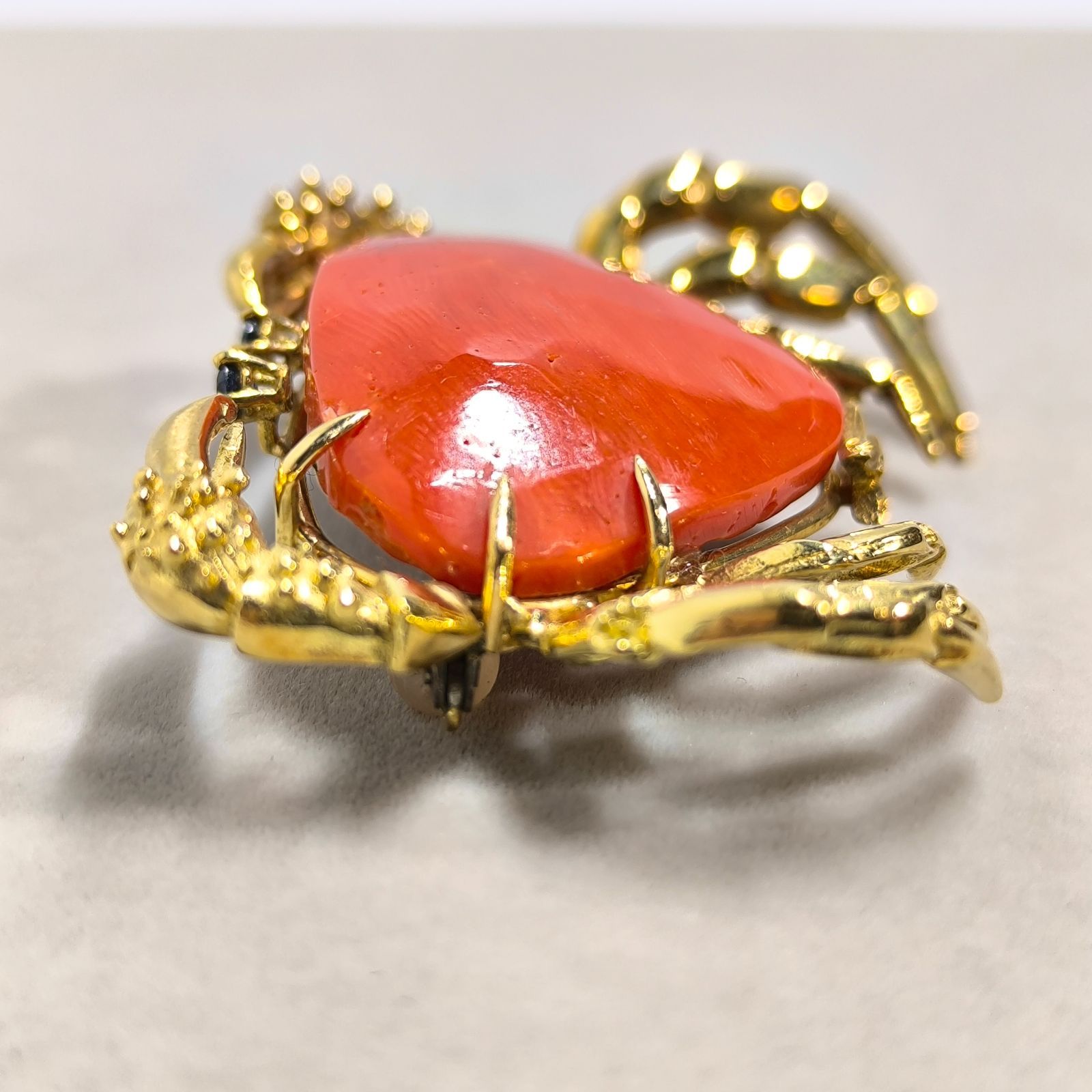 La Taillerie Du Corail クラブモチーフブローチ K 18 750 珊瑚 サファイア フランス コルシカ島