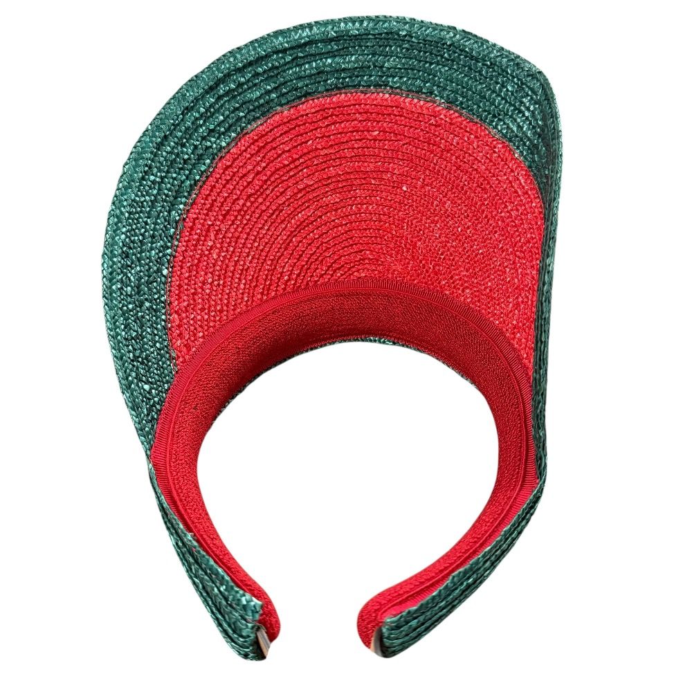 【商品名】GUCCI グッチ ラフィア シェリーライン サンバイザー レッド×グリーン