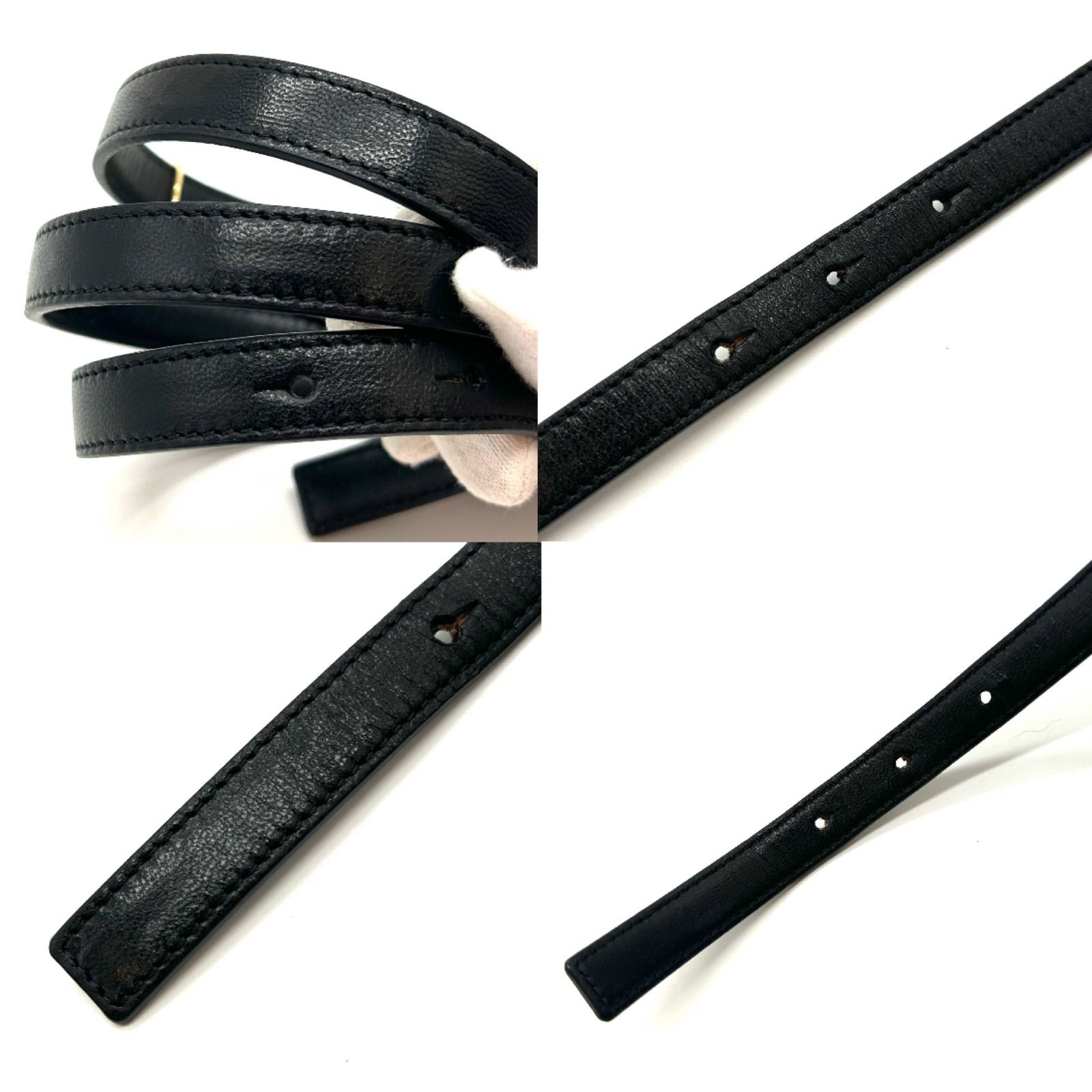LOEWE ロエベ アナグラム ベルト レザー ブラック ゴールド金具 70 80 レディース