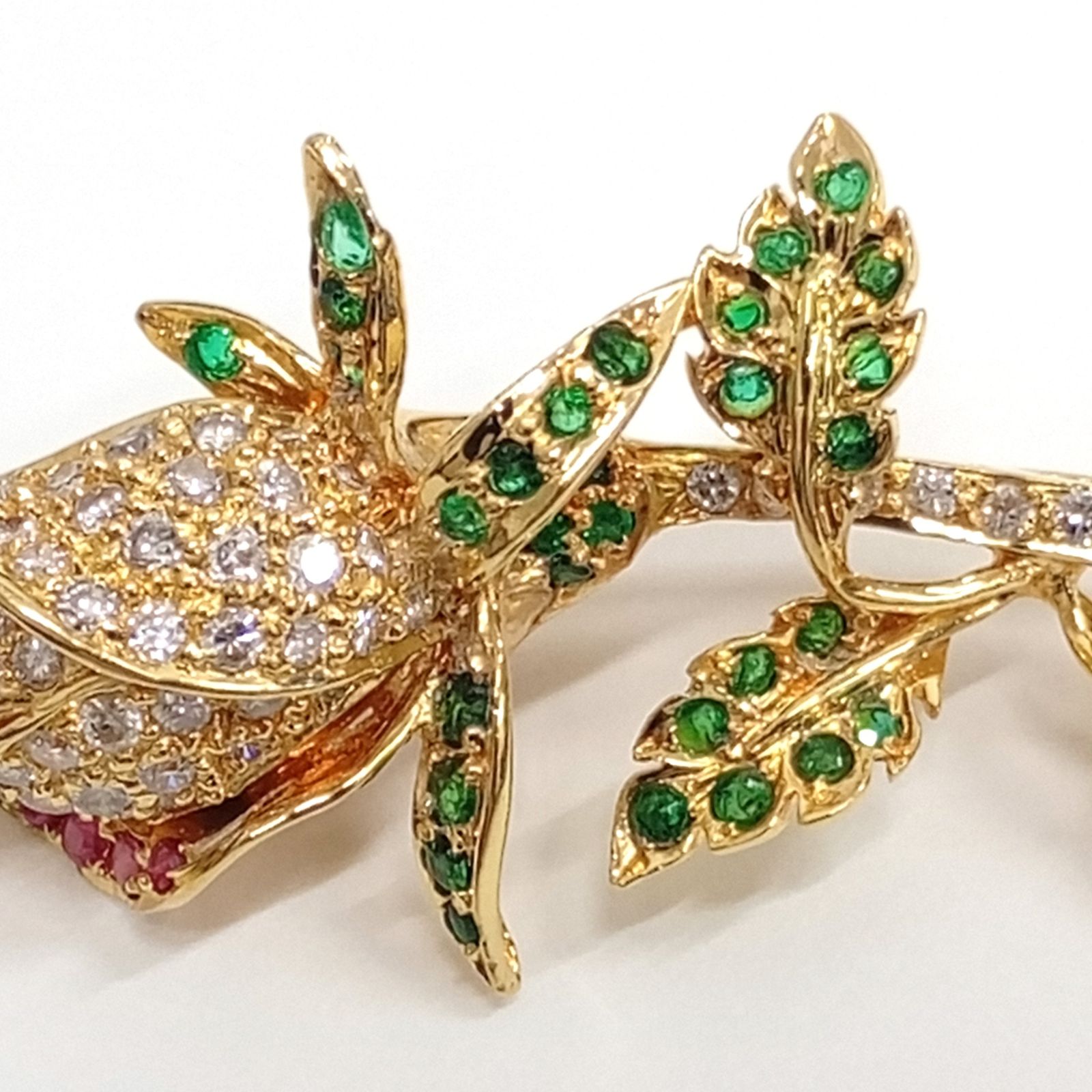 K18 バラモチーフ メレD・エメラルド・ルビーct不明 9.42g デザイナーズ ジュエリー ブローチ トップ ゴールド GOLD【新品】JA-25054