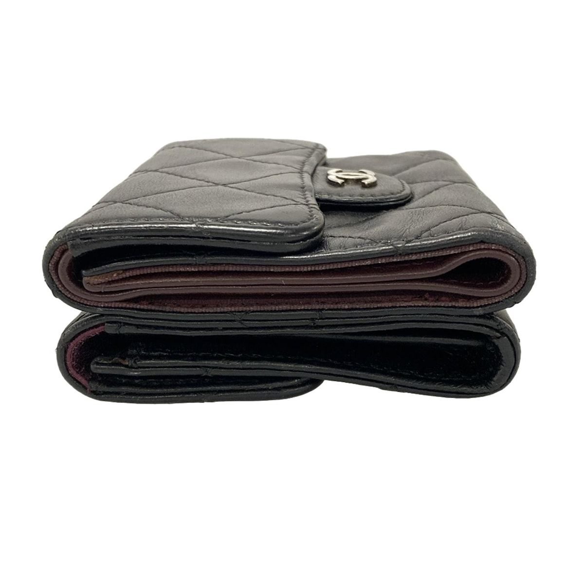 CHANEL シャネル Wホック財布 マトラッセ 黒 ラムスキン