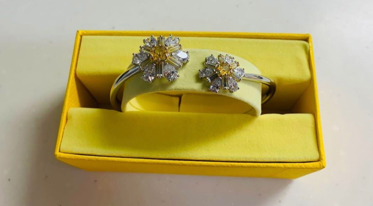 スワロフスキーSwarovski Idyllia バングル フラワー イエロー M