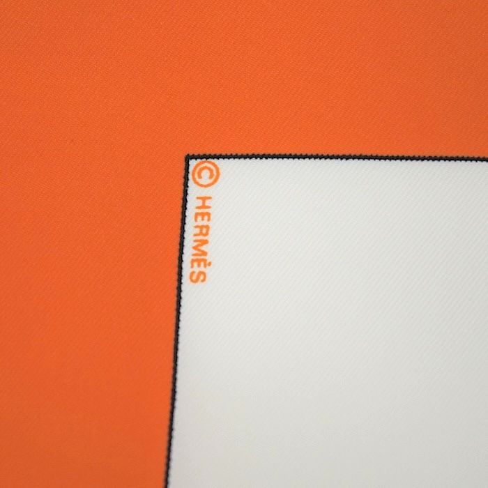 エルメス HERMES スカーフ カレ 70 シルク ZINGARO TOKYO 2005 ミニスカーフ バンダナ 正方形 馬 オレンジ ブラン ホワイト ノワール ブラック mbq 30002