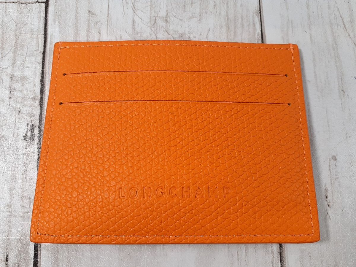 LONGCHAMP ロンシャン ル ロゾ カードケース オレンジ シルバー 【J62】