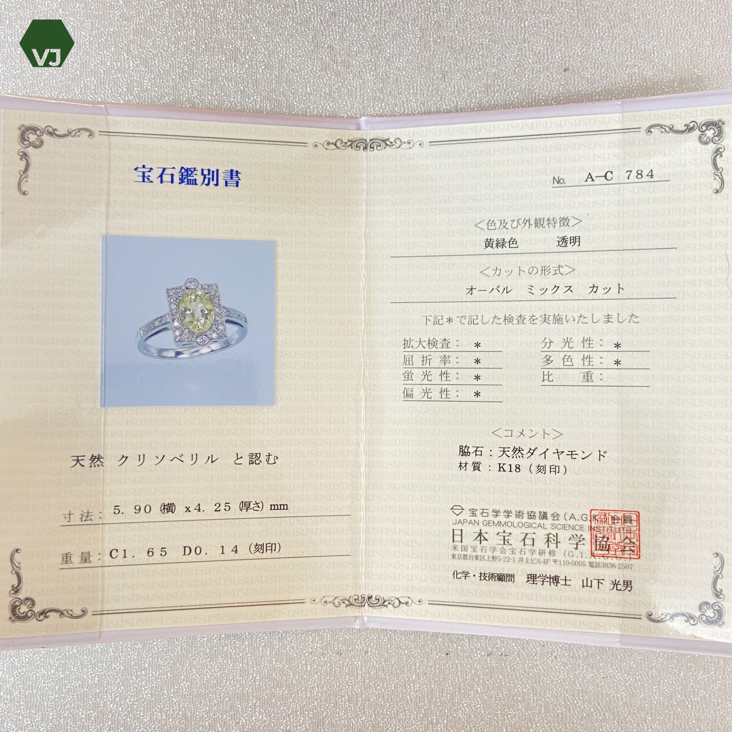 31-25 クリソベリル ダイヤモンド リング 1.65 ct D 0.14 K 18 WG 13.8号 By vivid-J