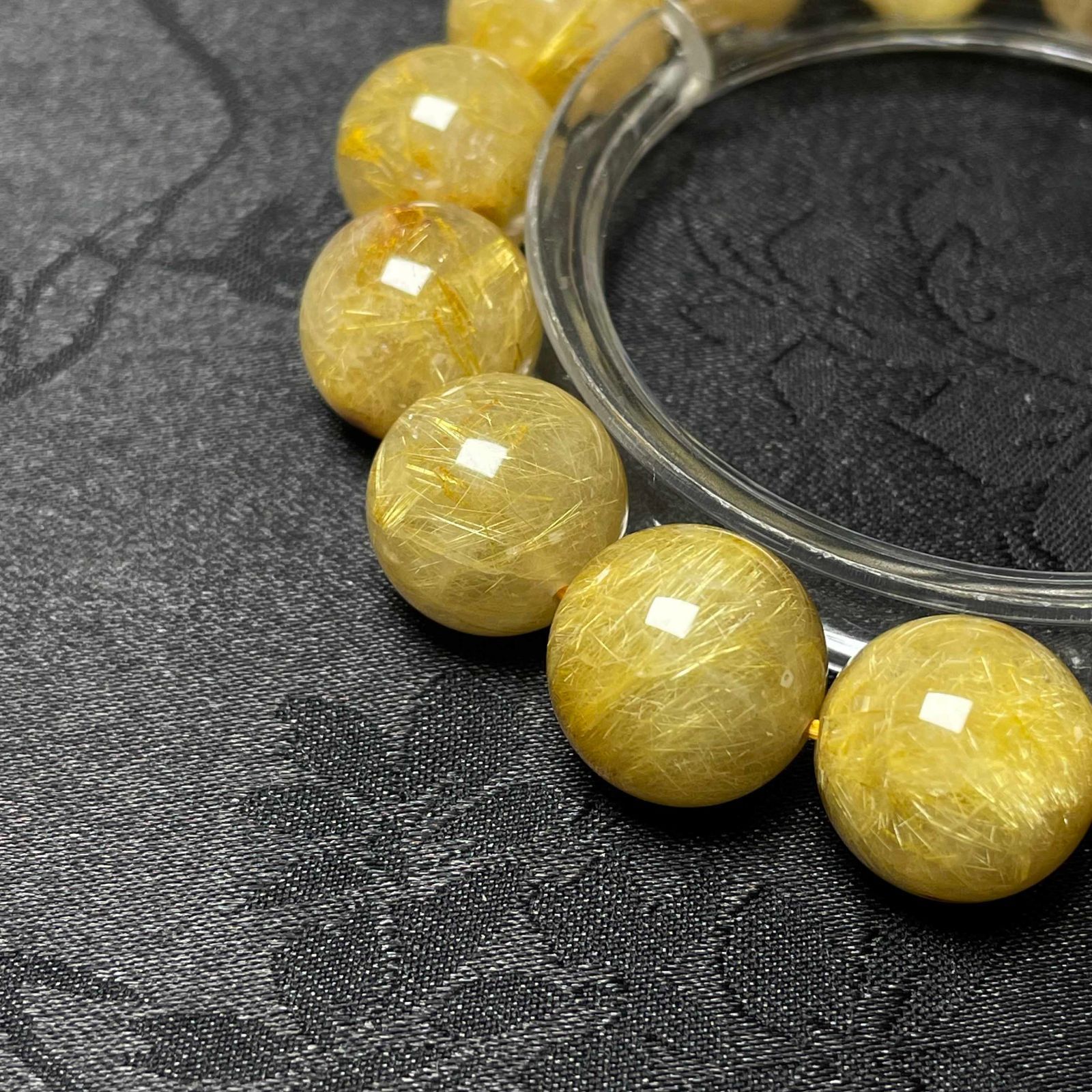 EU製 ! 満針ルチルクォーツ ブレスレット パワーストーン 天然石 金運 お守り プレゼント 13.7-14.1 mm ZB 9548