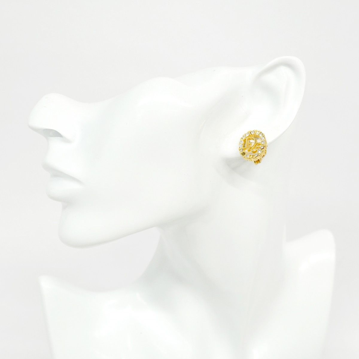 5 jmb 0345 クリスチャンディオール イヤリング ディオールロゴ オーバル GPメッキ ラインストーン ゴールド レディース