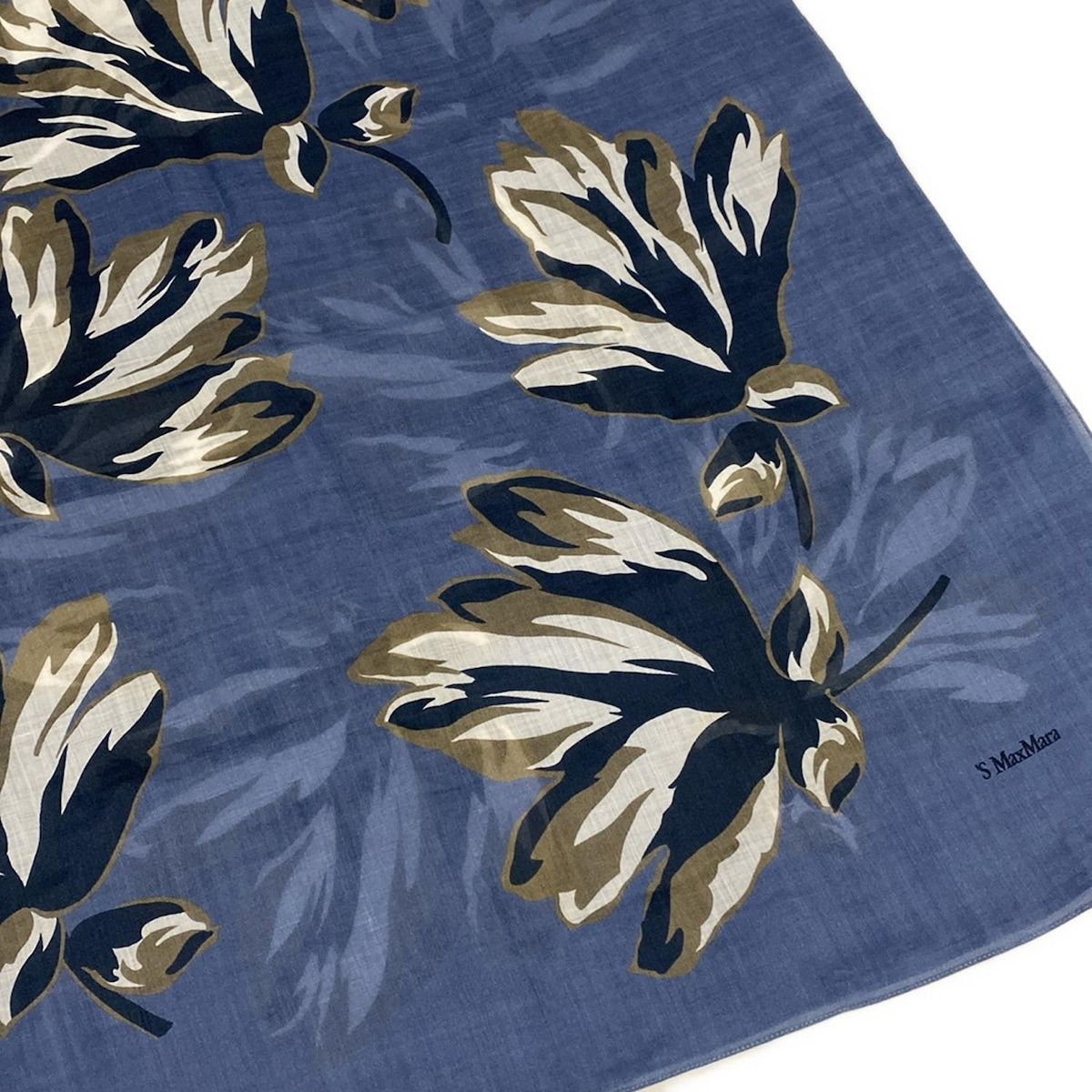 S Max Mara マックスマーラ ストール ショール - ブルーグレー×白×マルチ 花柄 リネン