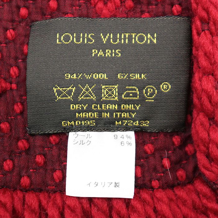 LOUIS VUITTON ルイ ヴィトン マフラー エシャルプ ロゴマニア LV ロゴ モノグラム ウール シルク スカーフ 小物 メンズ レディース ユニセックス レッド 赤 M 72432 イタリア製