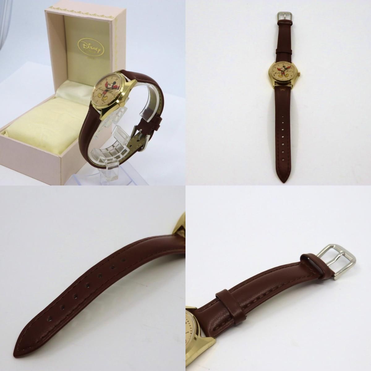稼働品 ディズニー ミッキーマウス 腕時計 メンズ 手巻き 5000-6030 ゴールド文字盤 ブラウンレザーベルト ビンテージ アンティーク レトロ クラシック キャラクターウォッチ クリーニング済 G
