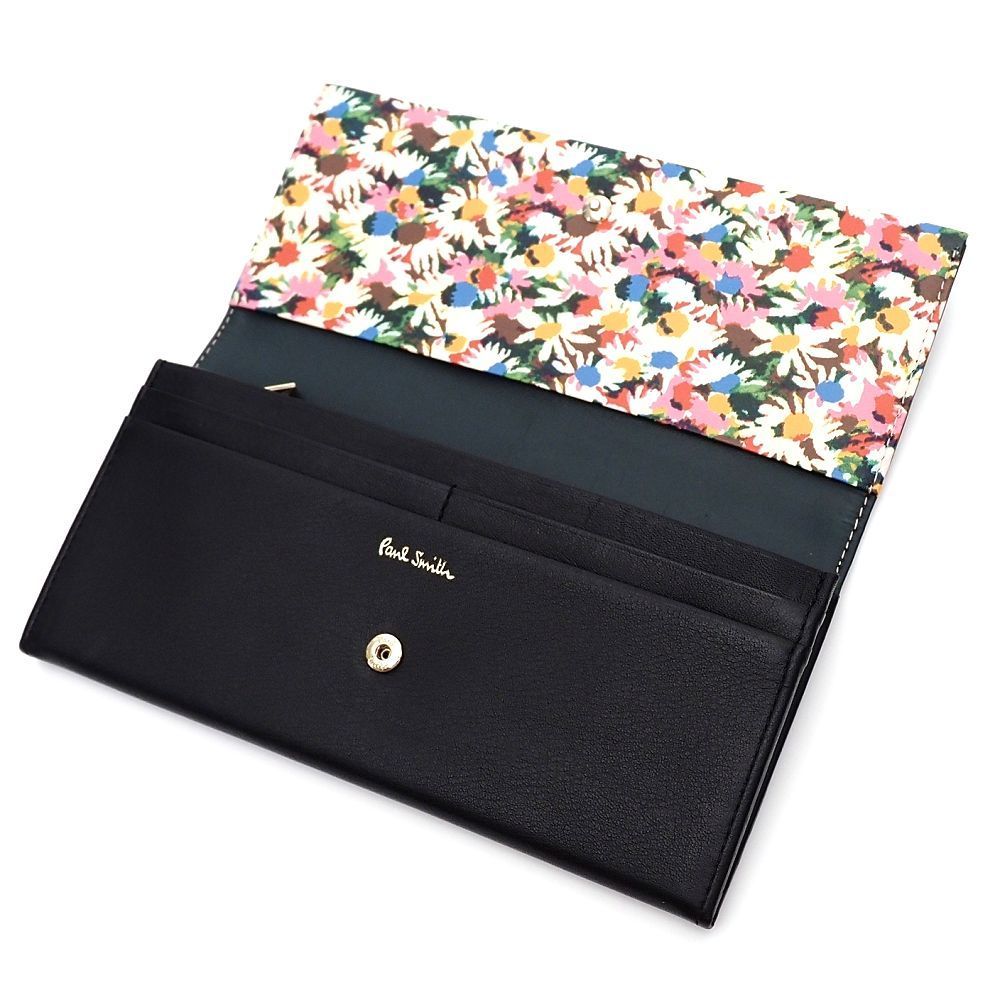 Paul Smith マーガレットプリントトリム レザーウォレット 長財布 ブラック BPW 564 ポールスミス レディース 3 WLPB 1 G 06166 KUG 20