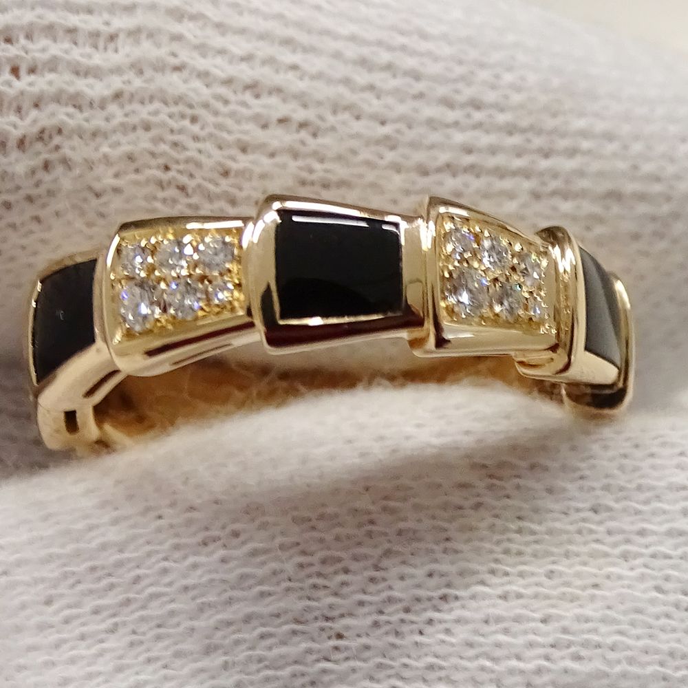 ブルガリ BVLGARI リング レディース ブランド 指輪 750 PG オニキス ダイヤモンド セルペンティ ヴァイパー ピンクゴールド 55 約15号 ジュエリー 磨き済み