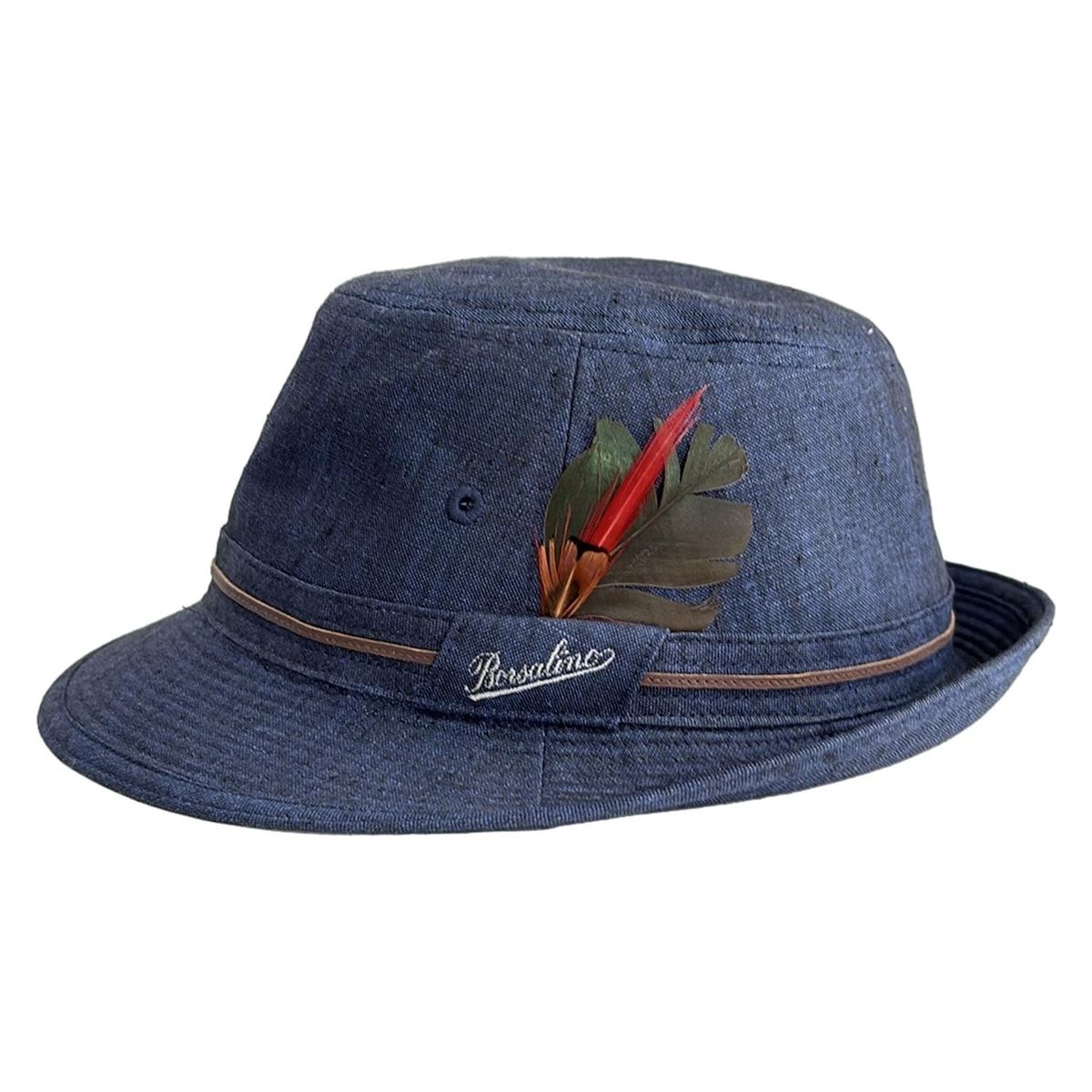 Borsalino ボルサリーノ ハット M 56.5 - ネイビー×ダークブラウン フェザー リネン レザー