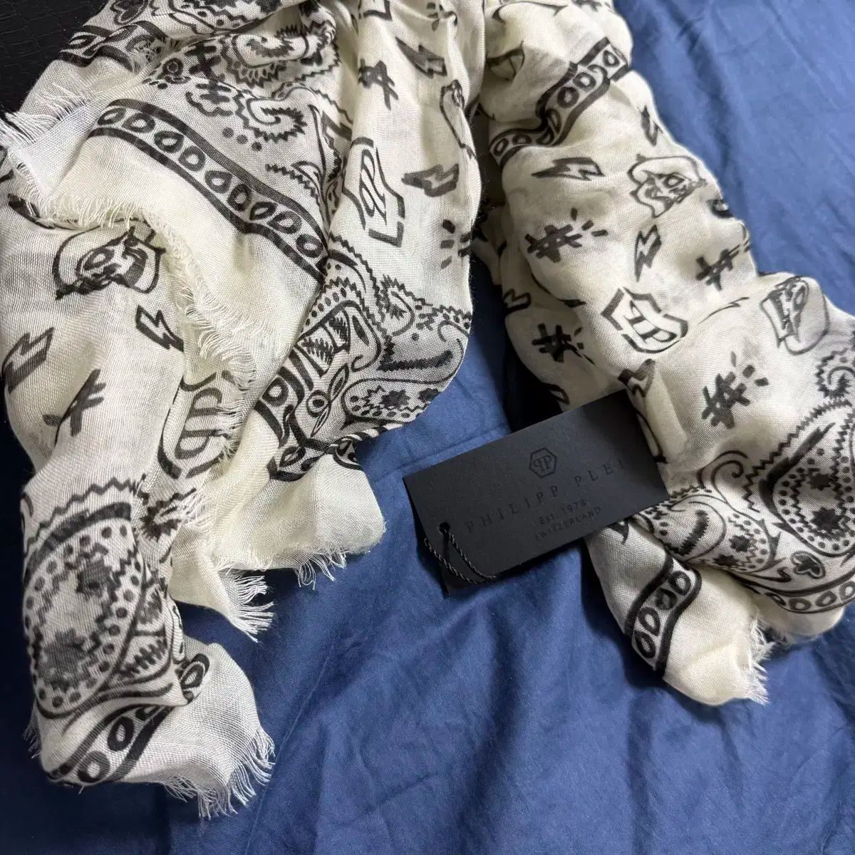 PHILIPP PLEIN(フィリッププレイン) モダール シルク ドル マフラー アイボリー - OS
