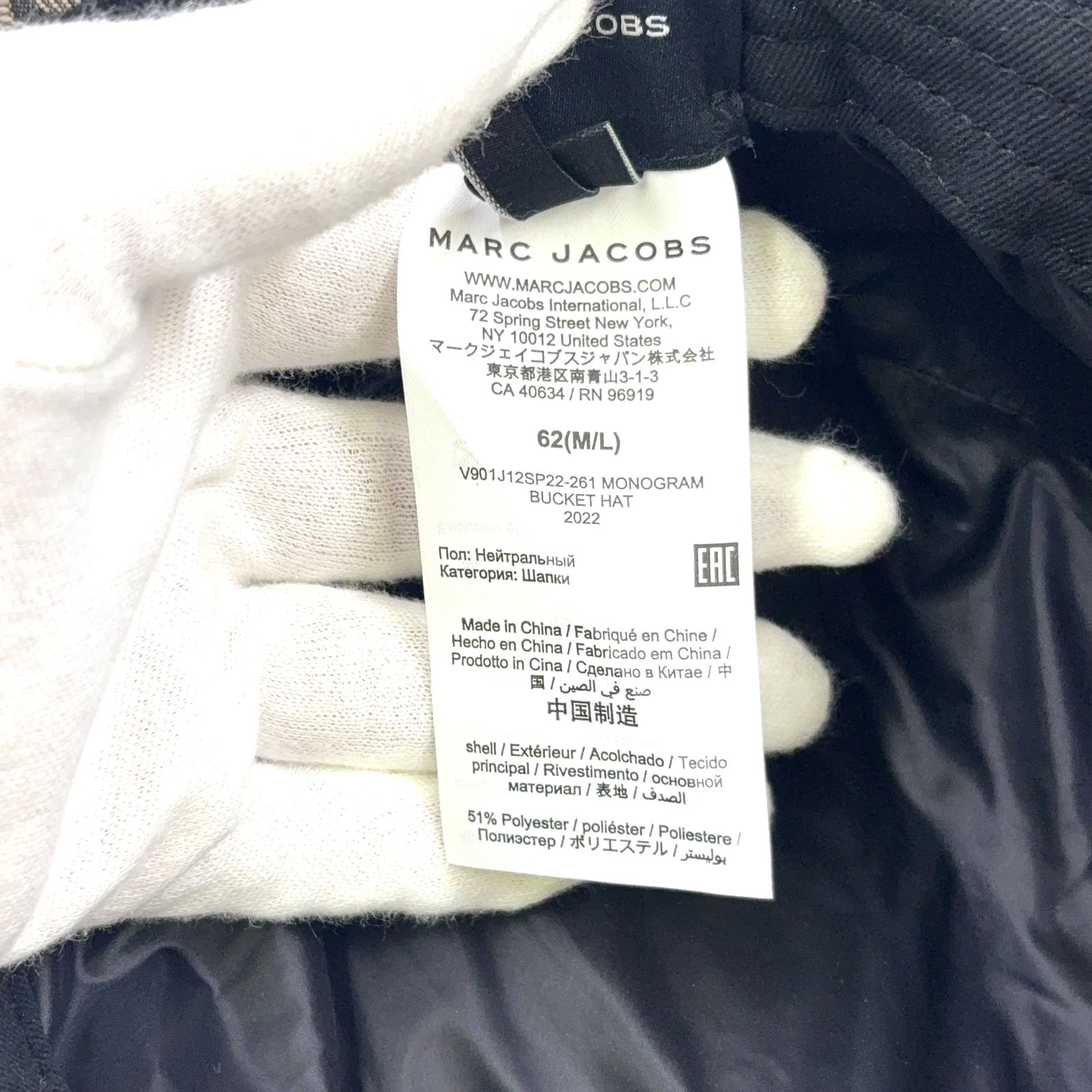 MARC JACOBS モノグラム バケットハット コットン ブラック×ホワイト 帽子
