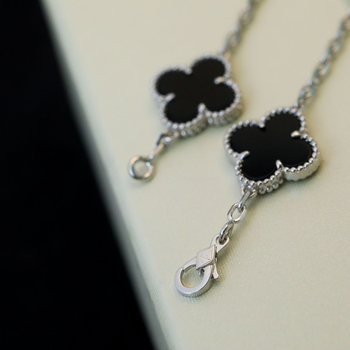 Alhambra間ドリルブラック五花ブレスレットブラック瑪瑙にホワイトゴールドを組み合わせた。