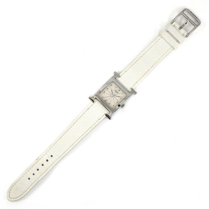 エルメス HERMES 腕時計 Hウォッチ HH1.210 スクエア アイボリー ギョーシェ文字盤 SS ホワイト ヴォー・エプソン レザーベルト クオーツアナログ 【箱・保付き】 【新品】