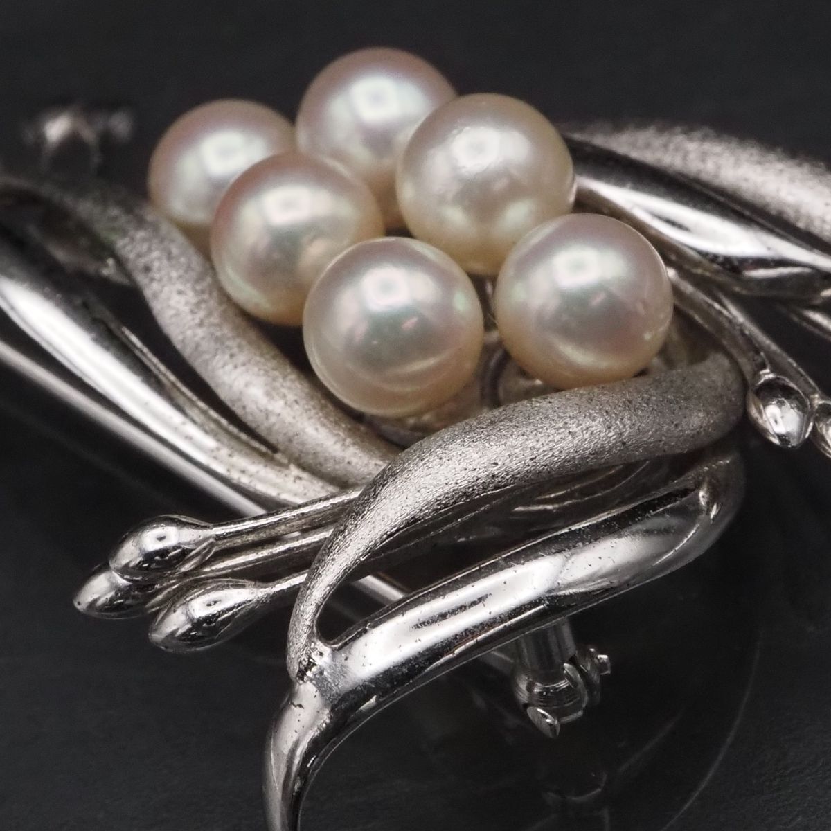 F 343 本真珠 6.1 mm 6珠 パール SILVER刻印 ブローチ デザイン シルバー コサージュ 誕生石