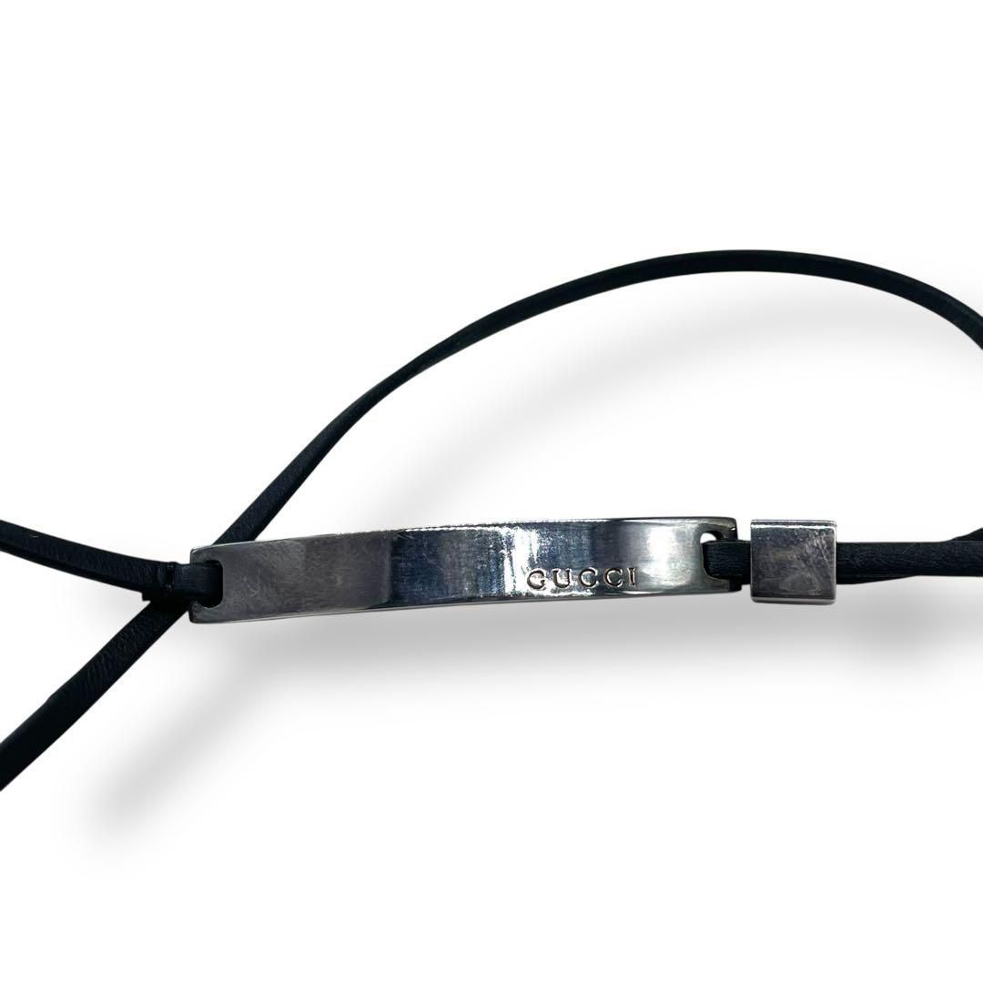 GUCCI グッチ チョーカー プレート ロゴ レザー シルバー ブラック SV 925