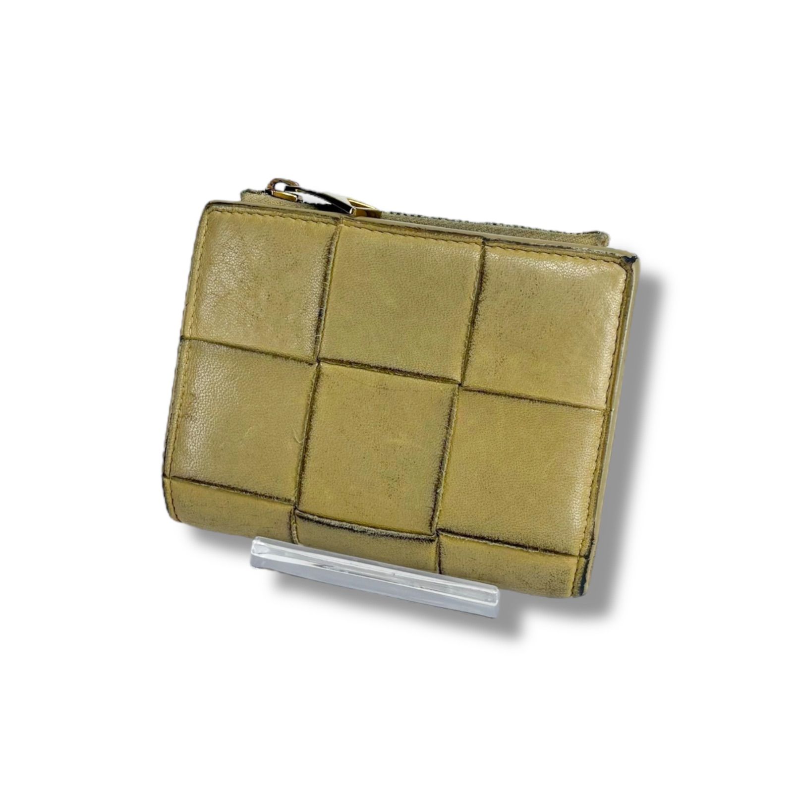 ボッテガヴェネタ BOTTEGA VENETA 二つ折り財布 コンパクトウォレット マキシイントレチャートレザー ベージュ ミニウォレット