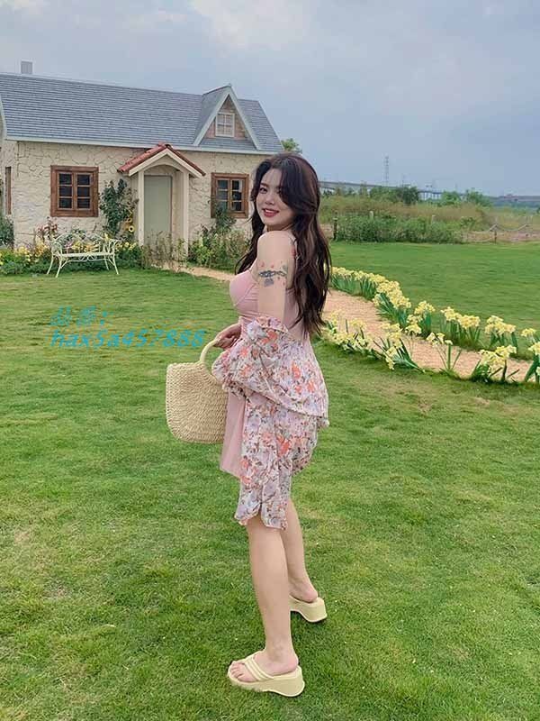 3点セット ワンピース水着 ぽっちゃり 水着 レディース 大きいサイズ セット水着 韓国 ガール 可愛い トップス付き フリル 痩せ見え 体型カバー ぽっちゃり水着 温泉 ビーチ プール 海 水泳 セクシー オトナ女子 かわいい ピンク グリーン N1JC