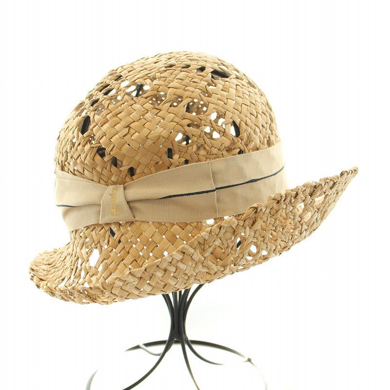 ボルサリーノ Borsalino 麦わら帽子 ストローハット リボン 編み込み ベージュ BB GY 30