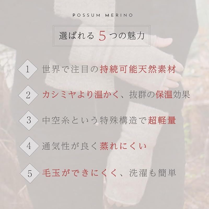 ?優れた保温性・ポッサムとメリノウールのブレンドは、カシミヤより暖かく寒い季節でもしっかり手を暖めます。