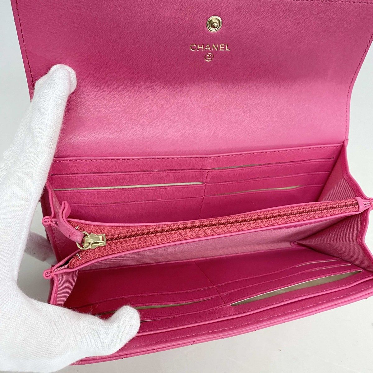5 id 4568-h シャネル 長財布 マトラッセ ラムスキン ピンク ゴールド金具 レディース