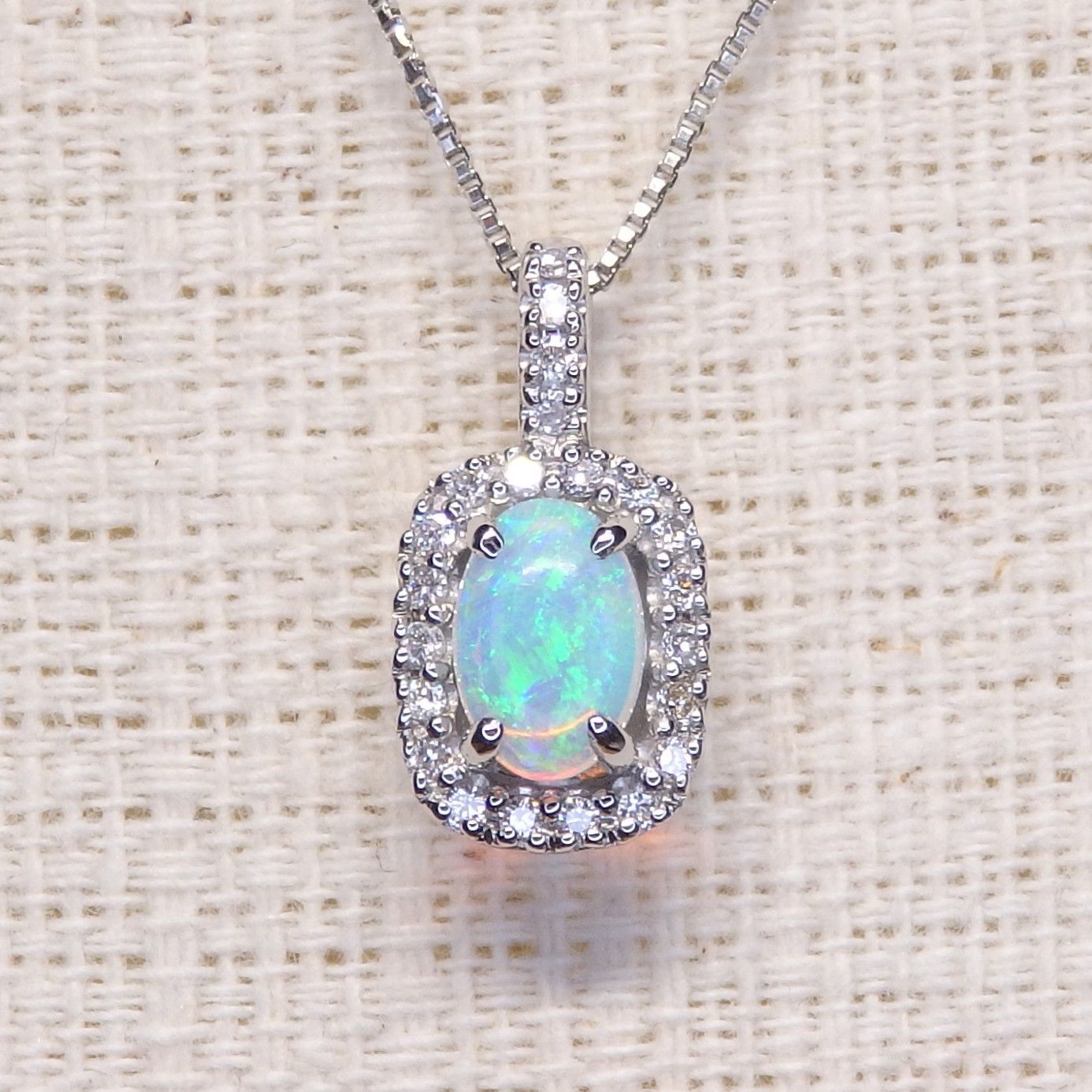 オパールと天然ダイヤモンドのゴージャスなコンビネーションのペンダント。