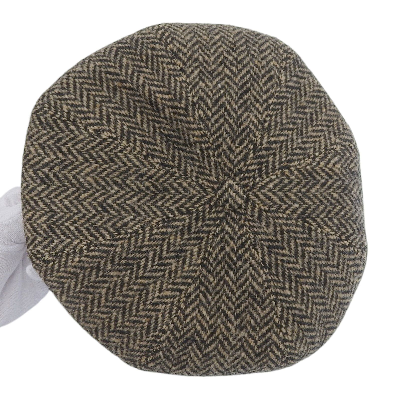 HERMES エルメス ウール カシミヤ ディアレザー使い ヘリンボーン柄 ツイード キャスケット 帽子 ブラウン 56 フランス製 レディース