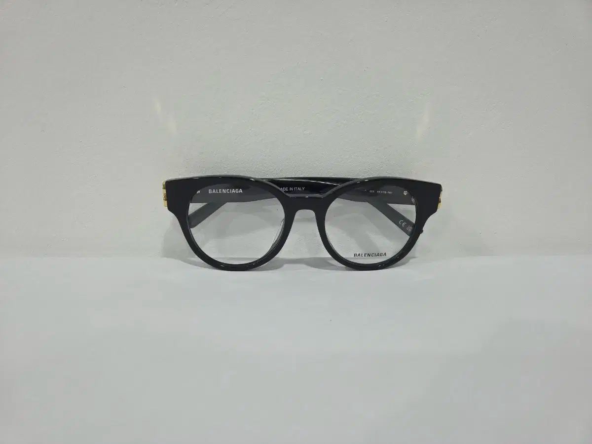 アセテートのメガネホルダーはベーシックなフレームで、すっきりとしたデザインが際立ち、サイドにはバレンシアガのロゴがポイントされています。