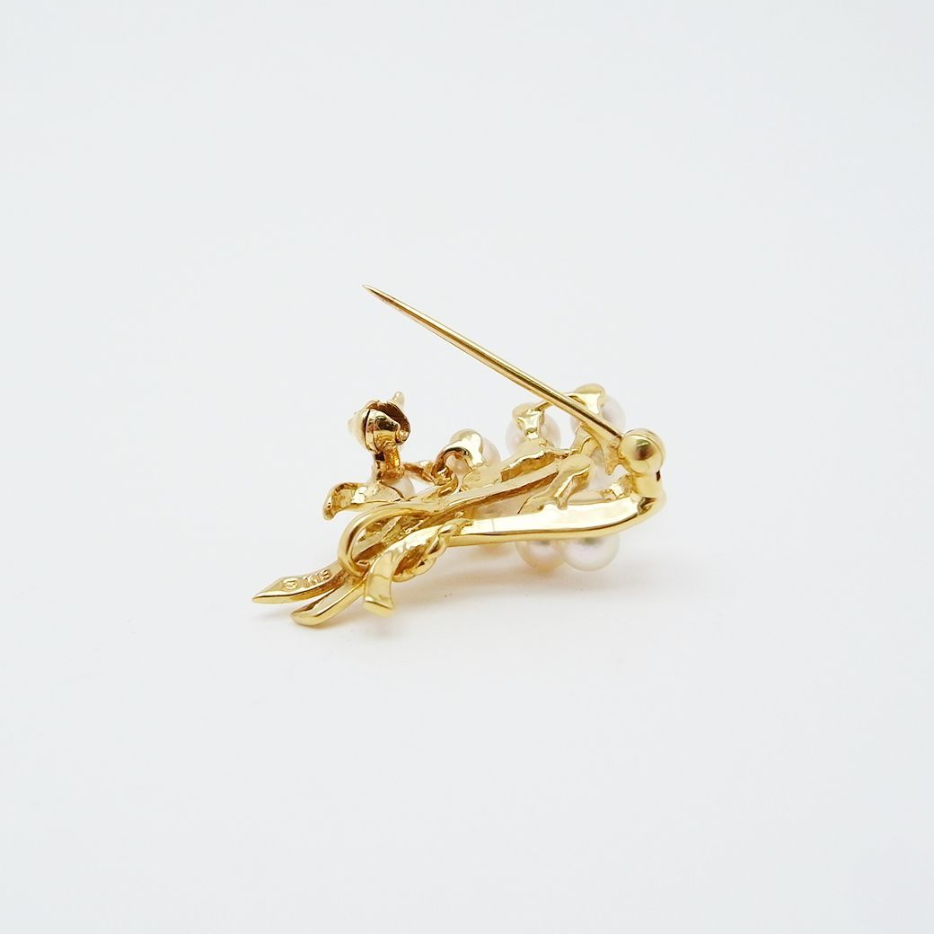 ミキモト アコヤ真珠 ブローチ 4.6-3.7 mm K 18 YG SAランク