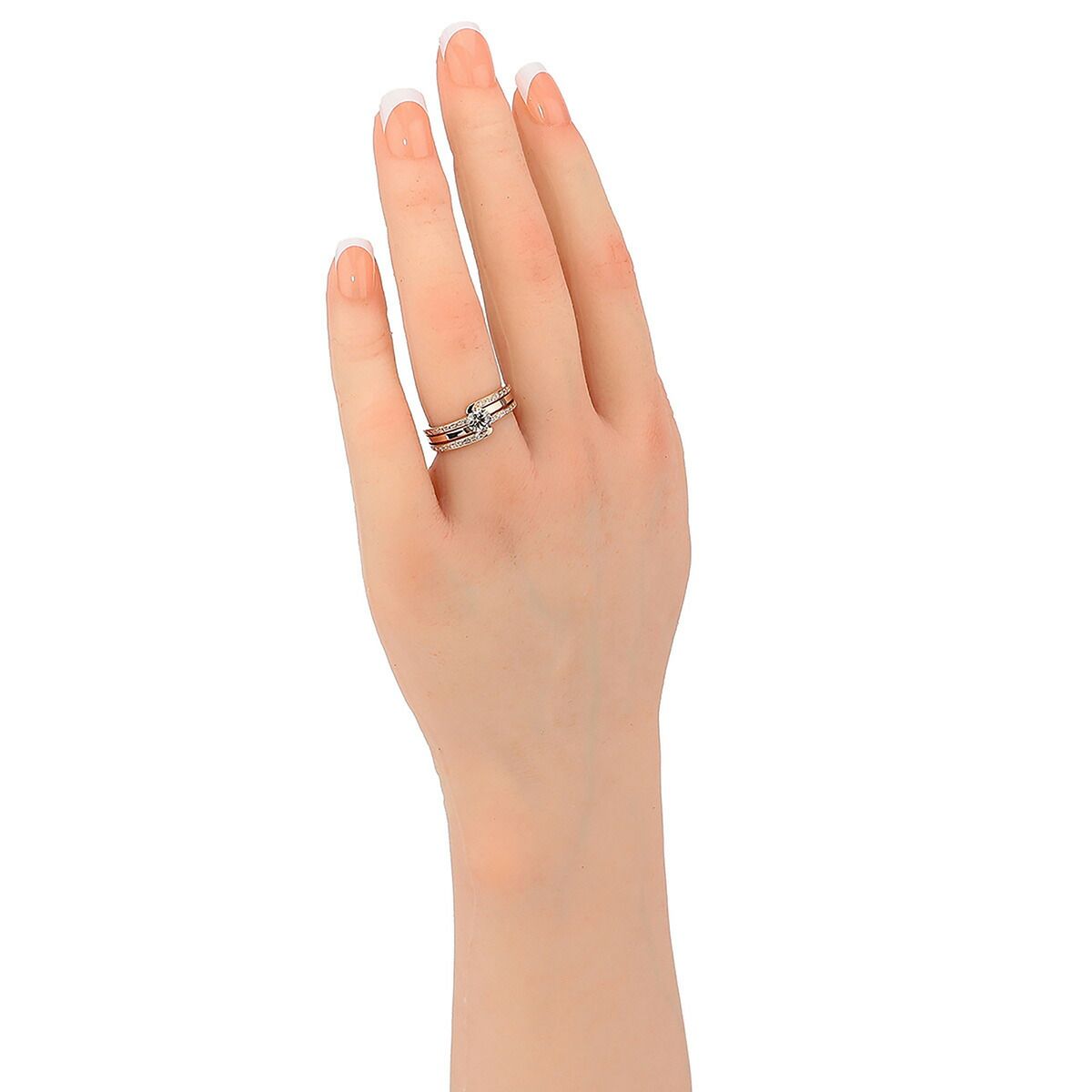 落ち着いた煌めきを放つブラウンダイヤモンドと、透明感あるクリアダイヤモンドが調和した、上品なピンクゴールドリング。さりげなくも華やかで、デイリーに使える上品さが魅力です。