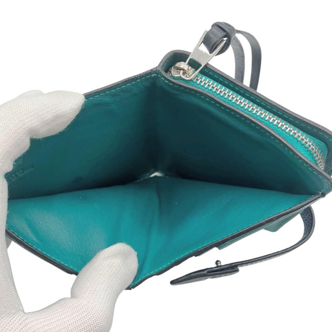 ロエベ コンパクトジップウォレット 二つ折り財布 ブルー