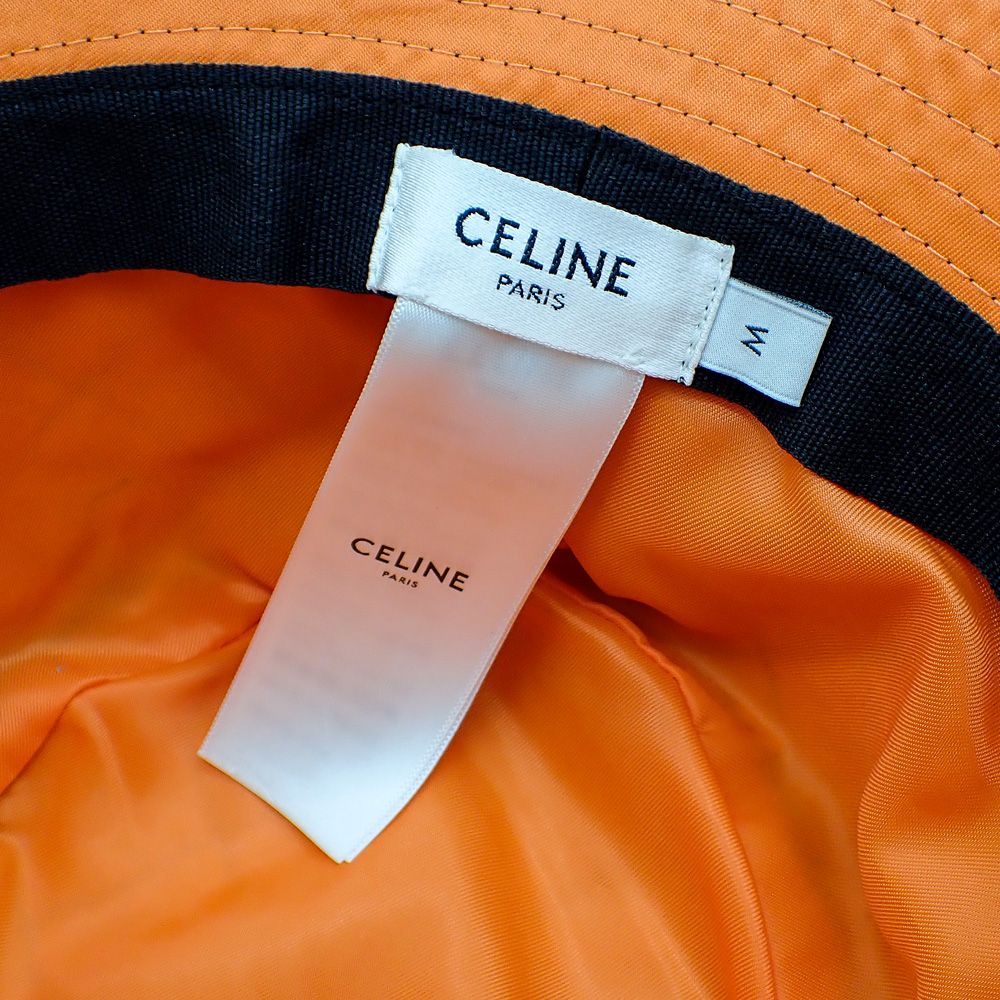 セリーヌ ロゴ バケットハット ユニセックス 帽子 ナイロン ブラック オレンジ