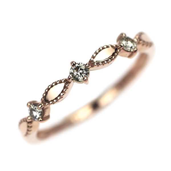 トータル0.12ctのダイヤモンドをセットした、エレガントなピンクゴールドリングです。