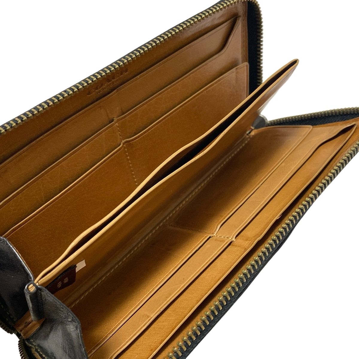 COACH コーチ 長財布 モダン ウォーターバッファロー レザー アコーディオン ウォレット 74972 黒 ラウンドファスナー