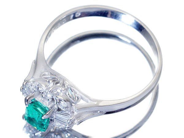 ジュエリー 爽やかエメラルドグリーン 良質天然エメラルド0.39 ct&ダイヤモンド0.15 ct Pt 900リング h 7820 vu