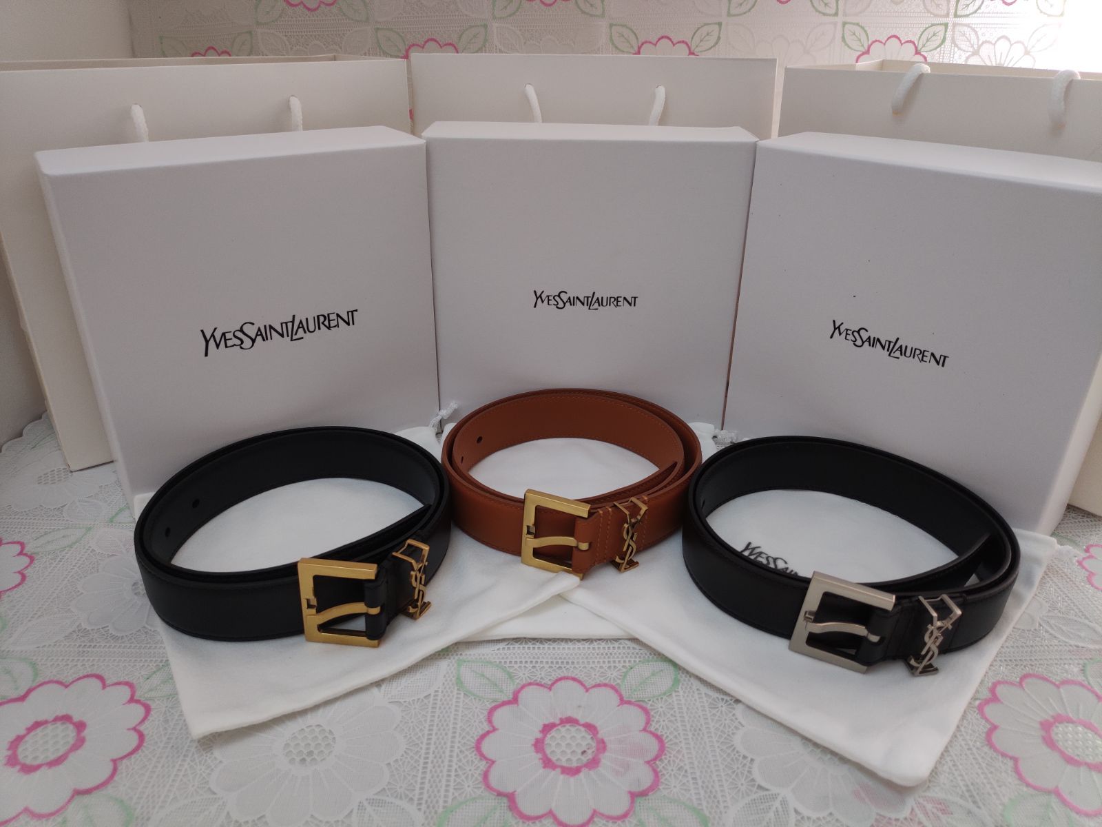 Saint Laurent サンローラン ベルト レザーベルト YSLバックル付き カジュアルベルト 男女兼用✜