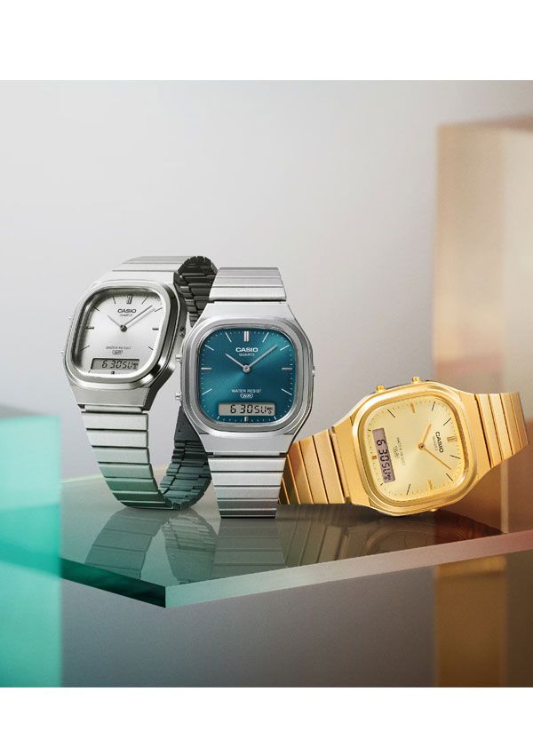 レトロモダンな装いのアナログ・デジタルコンビネーションモデル、AQ-240です。