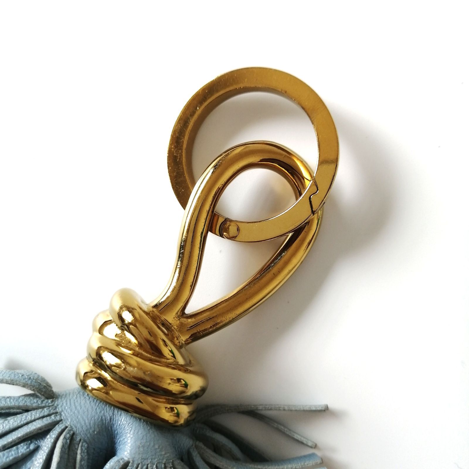 良品 ボッテガヴェネタ BOTTEGA VENETA キーリング キーホルダー フリンジ 水色【157】