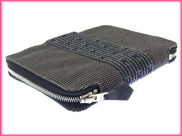 エルメス HERMES 手帳カバー エールライン アジェンダ グレー×ブラック レディース