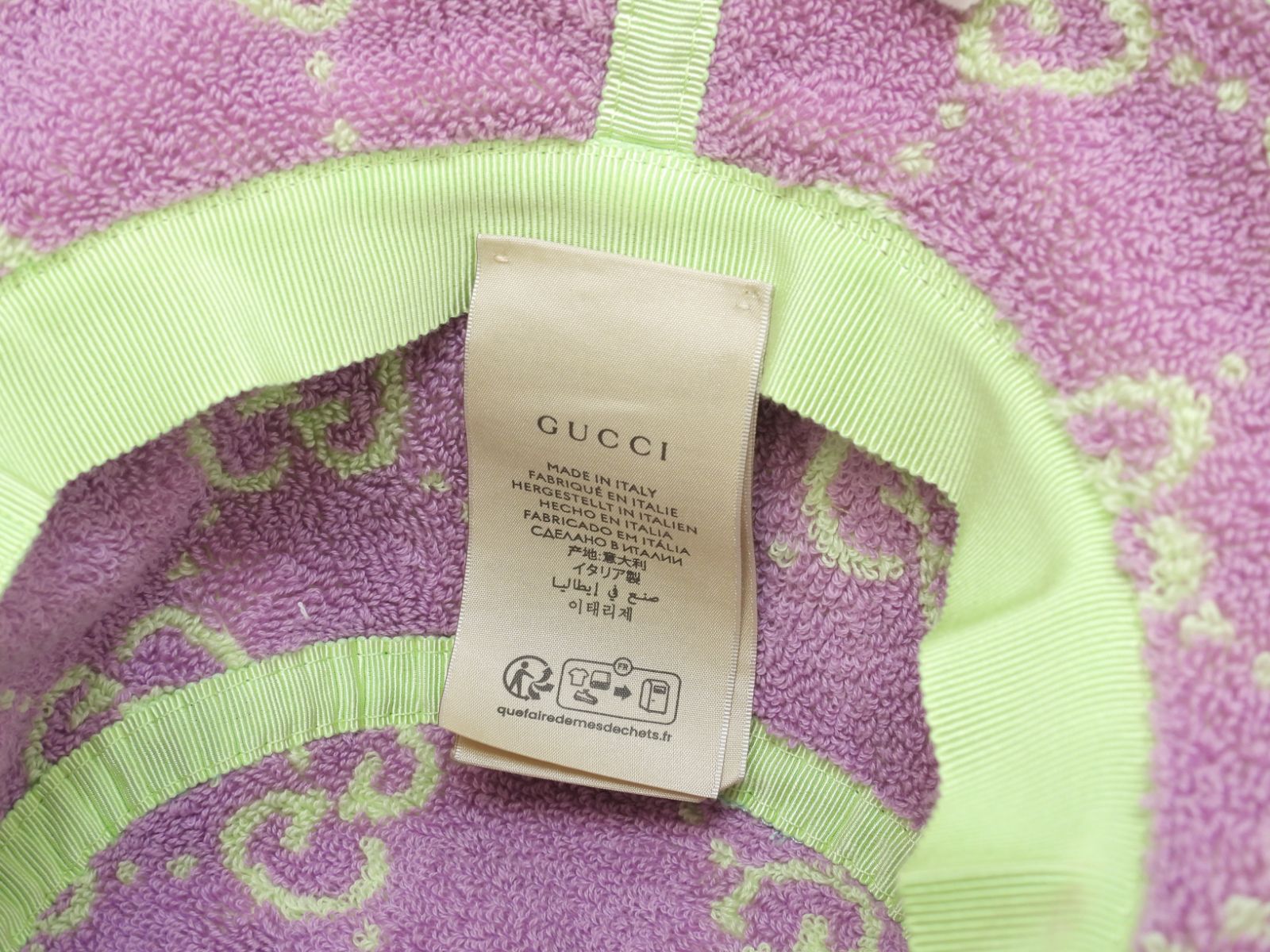 #Gucci #BaguetteHat #Hat #Baguette #Viscosa #Cotton #PileFabric #Green #Pink #90%new #authentic #GG #secondhand #wholeSale #haibanya #aisai-jp #転売可